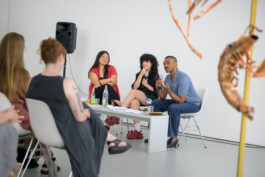 Cem A., Crit Club: What is more important, network or artwork?, Panel-Performance, 28.06.2025, Photo: Marc Doradzillo © Biennale für Freiburg 3