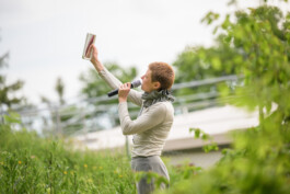 Keren Cytter, Business Class, performative reading, performed by Sarah Lehnerer in collaboration with Jackie Grassmann and Inka Meißner, 19.06.2021, Photo: Marc Doradzillo © Biennale für Freiburg 1