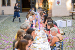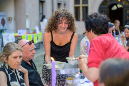 Agnes Essonti Luque, Joy is a Shared Table, Food-Performance, 26.07.2025, Photo: Marc Doradzillo © Biennale für Freiburg 3