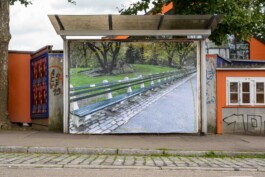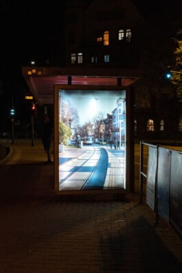 Finnegan Shannon, UNICORN, 2023, Installation view Bushaltestelle Ferdinand-Weiß-Str., Photo: Marc Doradzillo © Biennale für Freiburg 2