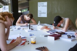 Maximiliane Baumgartner, Flugblattwerkstatt, Workshop, Photo: Sévérine Kpoti © Biennale für Freiburg 2
